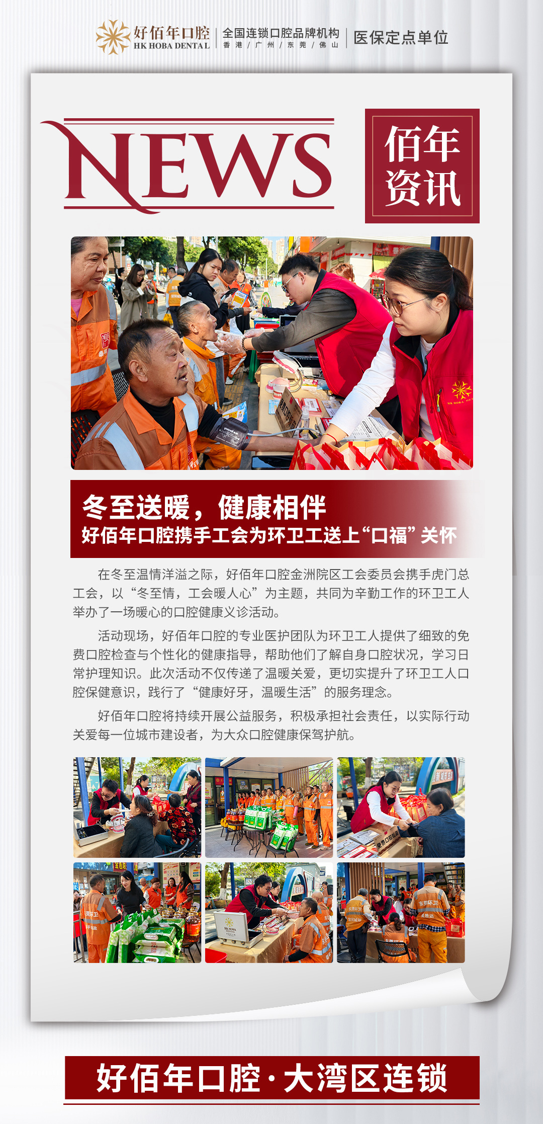 冬至暖“牙”!好佰年口腔携手工会为环卫工人送义诊,传递城市温情